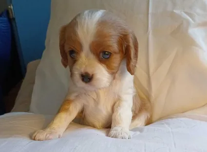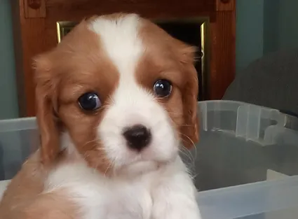 Princess is a sweet Blenheim (red and white) Mini Cavapoo with a gentle, loving nature.