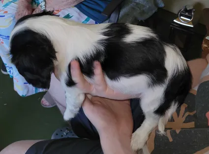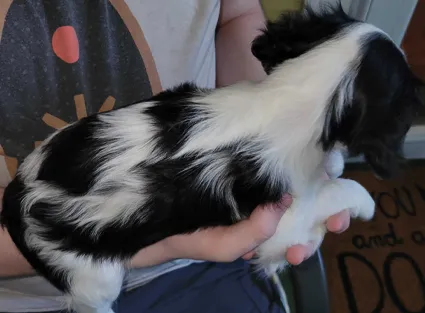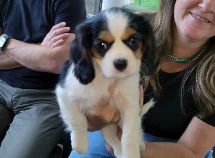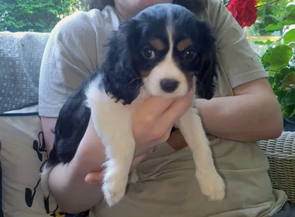 Tilly is sweet, calm, and a wonderful mom. She is a Tricolor King Charles Cavalier Spaniel, born in 2022.
